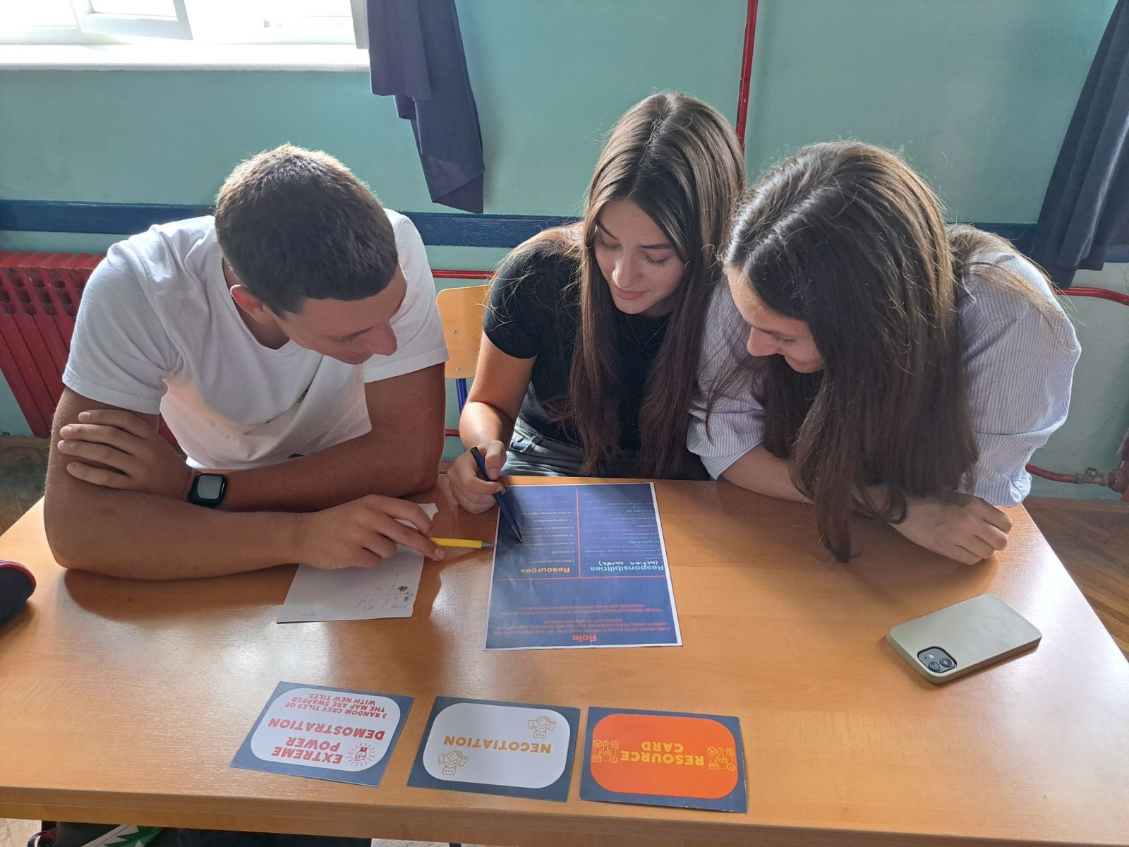 Danas smo na izbornoj nastavi iz PiG-a, s prof. Natalijom Palčić i Spejom, trenerom neformalnih vještina iz udruge OIP Posejdon, imali izuzetno zanimljivu radionicu i odigrali novu interaktivnu edukativnu društvenu igru Proaktivni Ekoland.