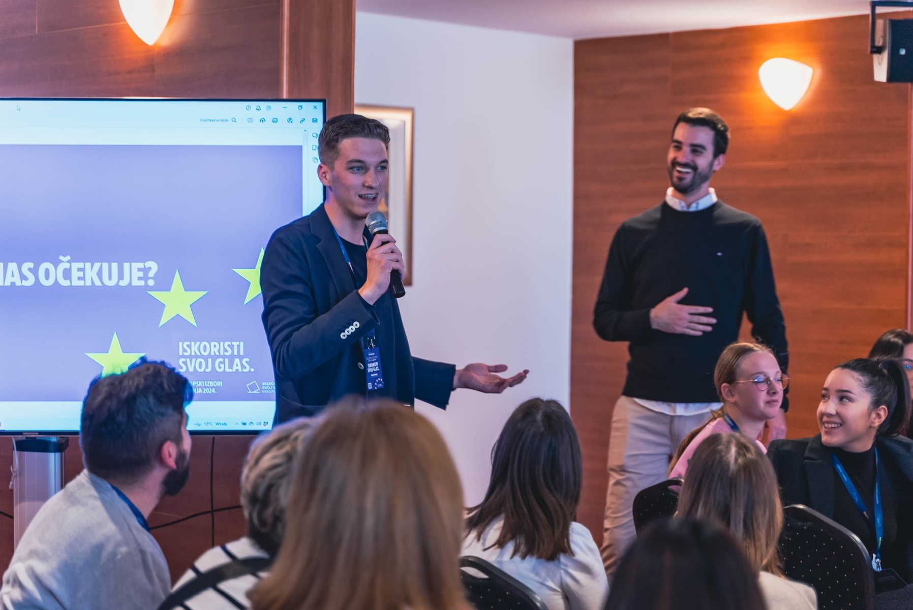 Program je započeo uvodnim pozdravima Maje Ljubić Kutnjak i Marka Boka, predstavanika Hrvatskog ureda Europskog parlamenta, nakon čega je uslijedilo zanimljivo motivacijsko predavanje “Glas mladih u super izbornoj godini” novinarke Ivane Dragičević.