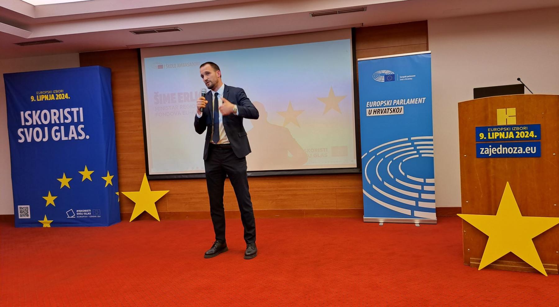 Program je započeo uvodnim pozdravima Maje Ljubić Kutnjak i Marka Boka, predstavanika Hrvatskog ureda Europskog parlamenta, nakon čega je uslijedilo zanimljivo motivacijsko predavanje “Glas mladih u super izbornoj godini” novinarke Ivane Dragičević.