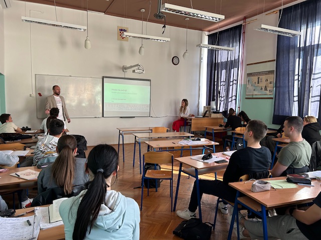 U sklopu Festivala znanosti održano je predavanje učenicima drugih, trećih i četvrtih razreda. Na zanimljiv način prikazane su mogućnosti i dosezi umjetne inteligencije u kreiranju novih poslova i zamjeni postojećih. Učenici su se uključili u raspravu o tome koriste li i na koji način neke oblike umjetne inteligencije te smatraju li je prijetnjom ili prilikom u vlastitoj privatnoj i poslovnoj budućnosti. Predavanje su održali predavači s Ekonomskog fakulteta u Splitu, Paško Burnać i Doris Podrug koja je ujedno bivša učenica naše škole.