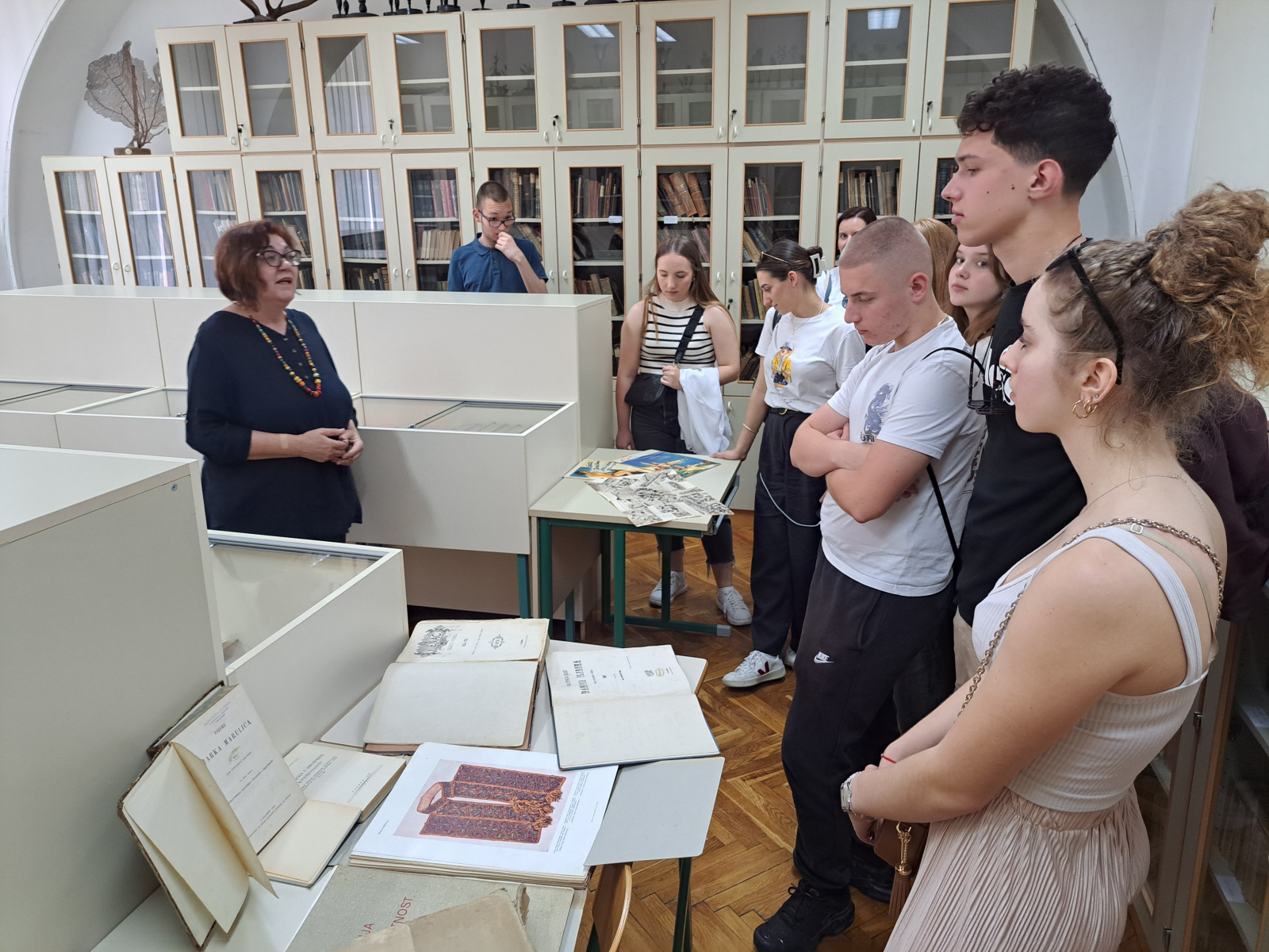 Posebno zahvaljujemo školskoj knjižničarki koja nam je pripremila posebno lijepo iskustvo i povela nas u Sobu starih knjiga gdje nam je izložila stare i vrjedne knjige i publikacije koje spominju sadržaje i zanimljivosti vezane za naš grad i Dalmaciju.