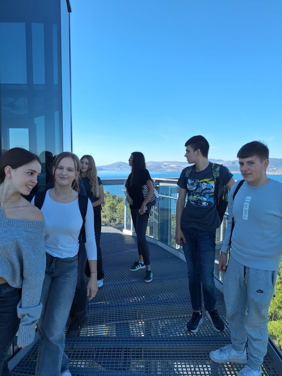 Danas su učenici drugih razreda u sklopu izborne nastave iz geografije posjetili novu promatračnicu na Marjanu. Na vrhu promatračnice su učenici određivali azimute bitnih lokacija koristeći kompas. Najbolji dio puta je zasigurno pogled koji se pružao s vrha. Učenici su bili pod vodstvom profesora D. G. Perić i T. Bilića.