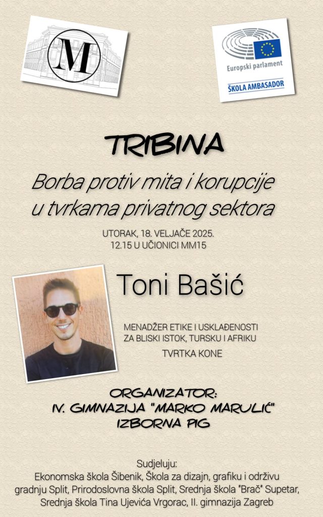Naš bivši učenik s izborne politike i gospodarstva danas je manager etike i usklađenosti za Bliski istok, koji već 11 godina živi i radi u Dubaiju. Toni je, nakon što je diplomirao na Ekonomskom fakultetu u Splitu, započeo svoju karijeru u Dubaiju gdje se specijalizirao za borbu protiv mita i korupcije u velikim međunarodnim kompanijama. Danas radi za finsku tvrtku Kone, koja proizvodi liftove i eskalatore, a njegovo područje odgovornosti pokriva Bliski istok, Afriku i Tursku.