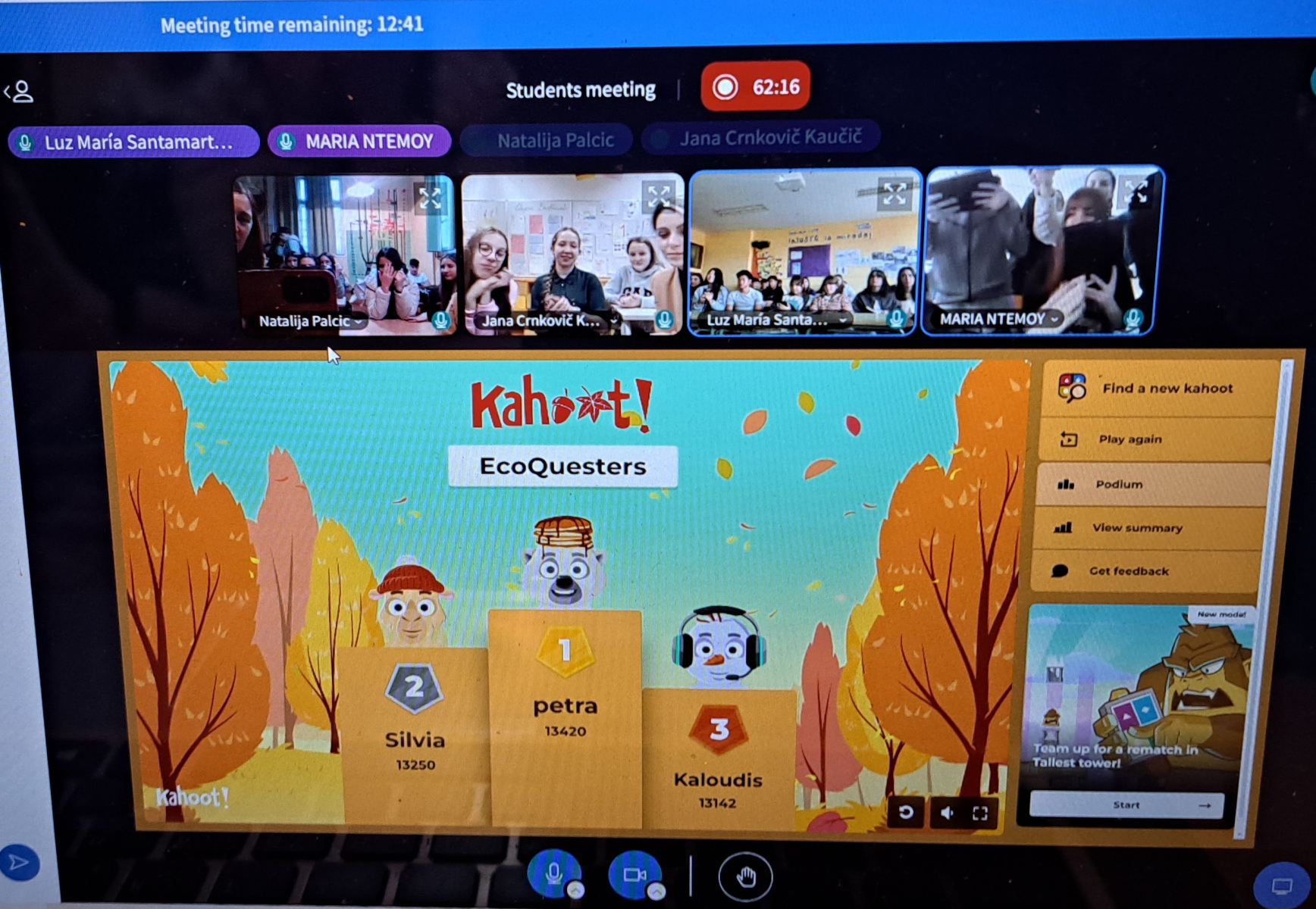 Ovog smo prosinca, na izbornoj nastavi iz Politike i gospodarstva, sudjelovali na online susretu s našim projektnim partnerima kako bismo se međusobno upoznali, predstavili naše škole i odigrali Kahoot kviz temeljen na pitanjima koja smo kreirali s ciljem boljeg upoznavanja naših zemalja. Bilo je to i prilika za promociju naših kultura i običaja jer smo razmijenili božićne čestitke i želje te jedni drugima zapijevali naše tradicionalne blagdanske pjesme.