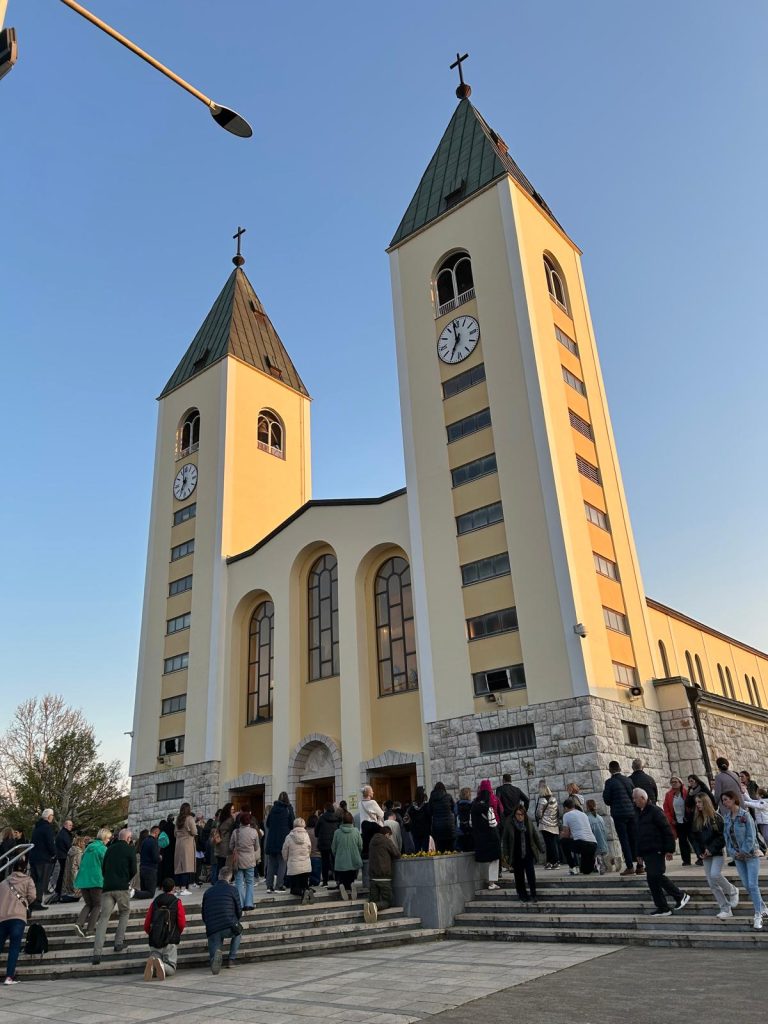 Oko 16 sati, nakon razgledanja stare mostarske jezgre, uputili smo se u Međugorje. Dio nas se, moleći putem Gospinu krunicu, uspeo na mjesto prvih ukazanja koje se nalazi nekoliko stotina metara iznad međugorskog zaseoka Podbrdo, a koje se danas se naziva Brdo Ukazanja. Na taj smo način iskazali ljubav i zahvalnost prema našoj Nebeskoj Majci. Cilj ovog putovanja bio je predati sve naše korake i buduće odluke u Ruke našeg Oca i naučiti prepoznavati Njegovu volju u našim životima. Iz Međugorja smo krenuli u 19 sati te smo se radosni vratili našim kućama.