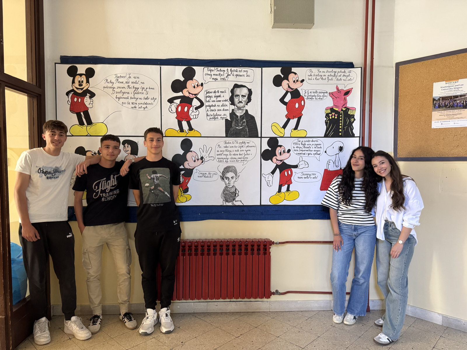 Ovogodišnja Noć knjige slavi ta čudesna bića pa se prisjećamo velikih djela u kojima životinje nisu samo likovi, već nositelji ideja, emocija i promjena. Upravo su naši mladi knjižničari tom prigodom izradili tematski pano “Mickey u gostima” te predstavile samo neke od omiljenih književnih, to jest životinjskih likova. Pano su izradili pod mentorstvom knjižničarke Karoline Viđak i profesorice Katarine Žanetić.