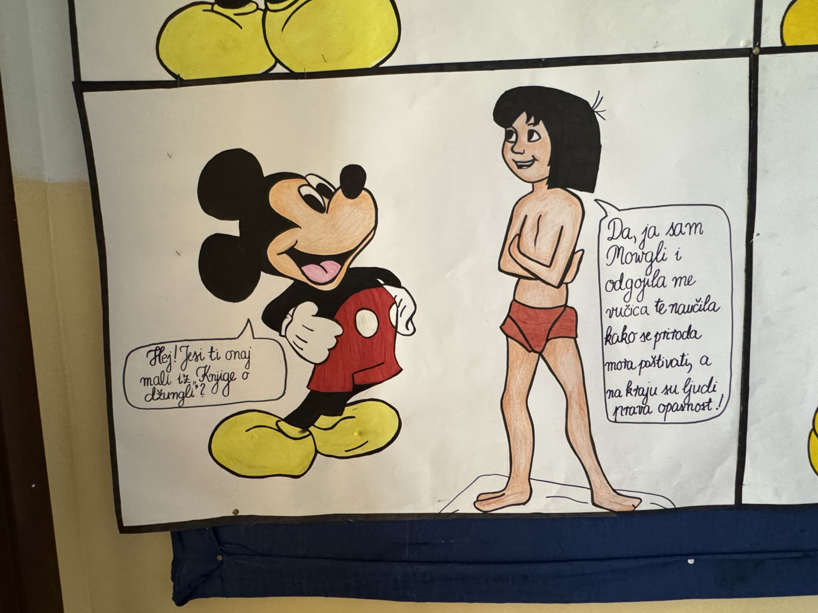 Ovogodišnja Noć knjige slavi ta čudesna bića pa se prisjećamo velikih djela u kojima životinje nisu samo likovi, već nositelji ideja, emocija i promjena. Upravo su naši mladi knjižničari tom prigodom izradili tematski pano “Mickey u gostima” te predstavile samo neke od omiljenih književnih, to jest životinjskih likova. Pano su izradili pod mentorstvom knjižničarke Karoline Viđak i profesorice Katarine Žanetić.