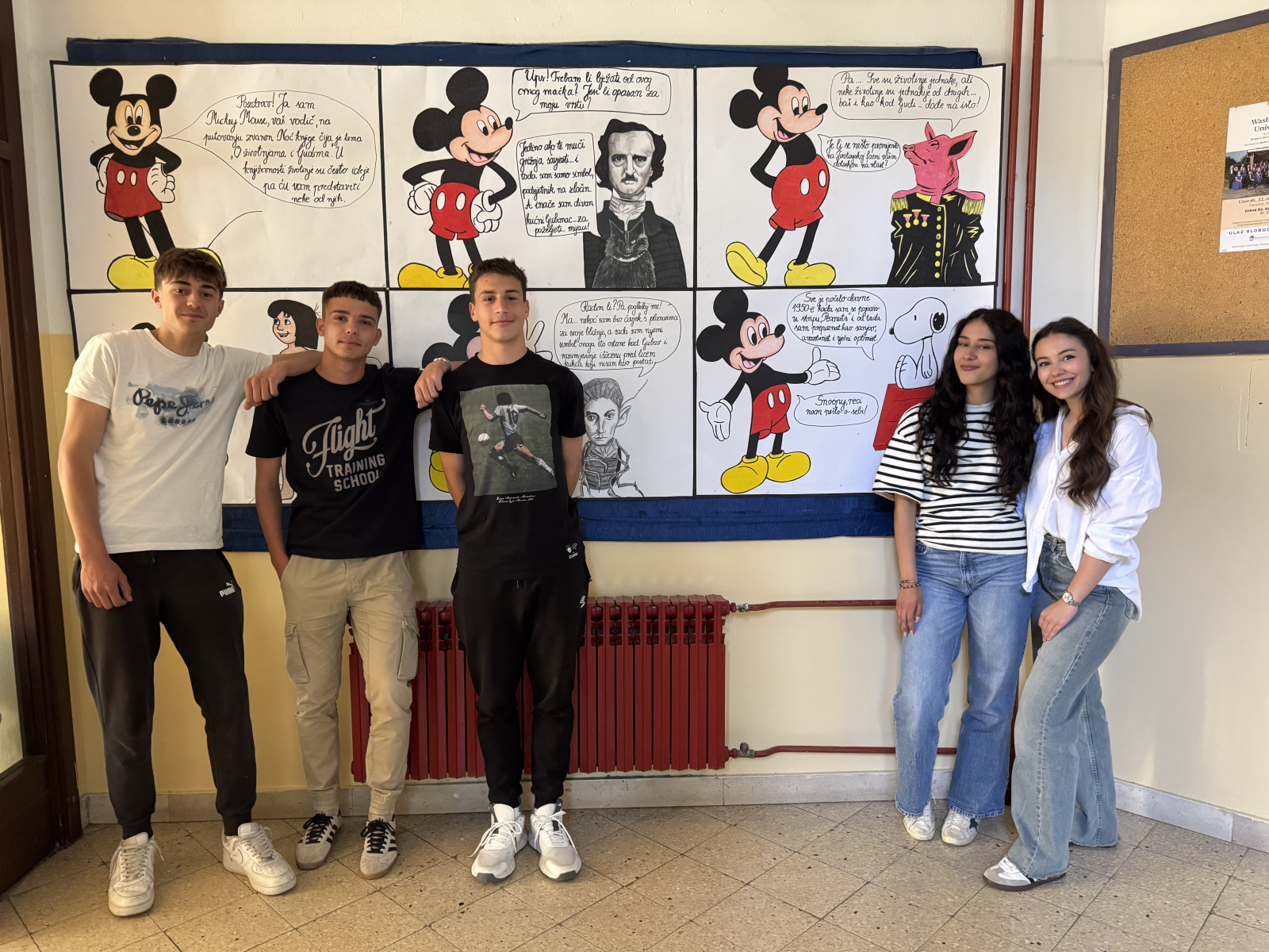 Ovogodišnja Noć knjige slavi ta čudesna bića pa se prisjećamo velikih djela u kojima životinje nisu samo likovi, već nositelji ideja, emocija i promjena. Upravo su naši mladi knjižničari tom prigodom izradili tematski pano “Mickey u gostima” te predstavile samo neke od omiljenih književnih, to jest životinjskih likova. Pano su izradili pod mentorstvom knjižničarke Karoline Viđak i profesorice Katarine Žanetić.