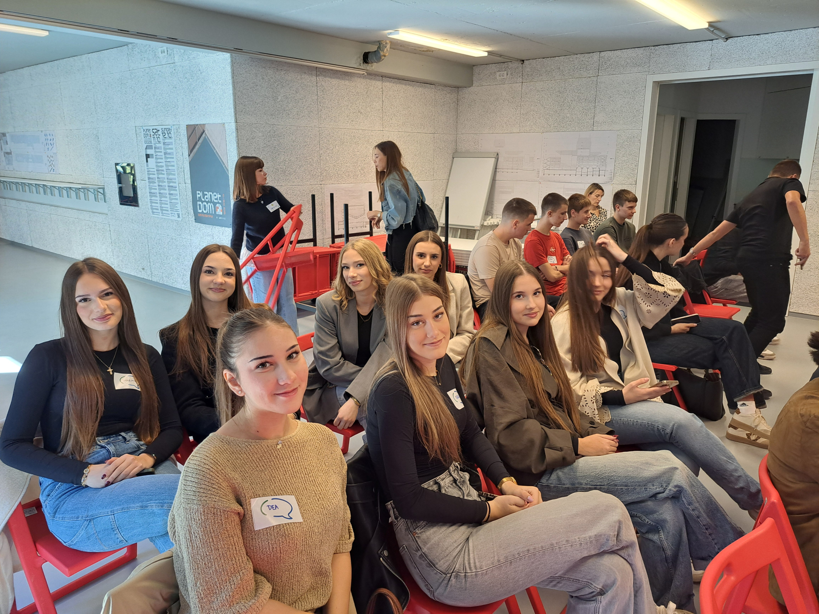 u četvrtak, 6. studenog 2025., učenici s izborne nastave Politike i gospodarstva, sudjelovali su na prvom Festivalu dijaloga koji se održavao u splitskom Domu mladih i Zoni. Ovaj festival je organizirala Info zona u partnerstvu s Udrugom Delta i Udrugom IKS u sklopu projekta “Uključivanje mladih: kako dalje?”, koji se financira sredstvima Europske unije kroz program Erasmus+.