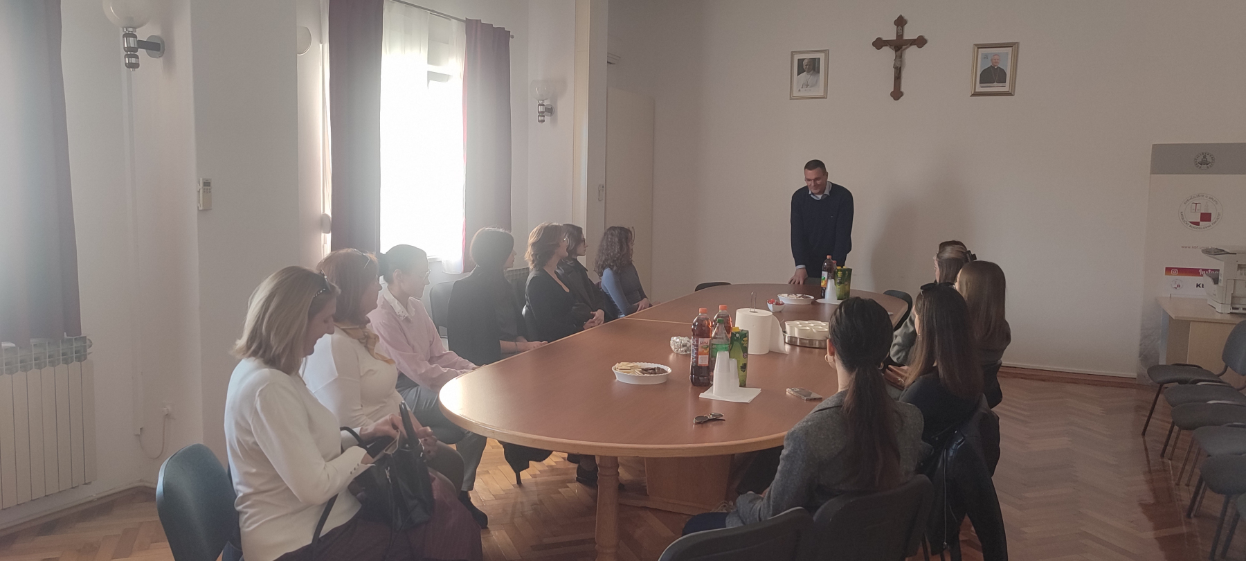 Njihovi prodekan za znanost doc. dr. sc. Domagoj Volarević, prodekanica za nastavu dr. sc. Jadranka Garmaz, ujedno pročelnica odjela za religioznu pedagogiju i katehetiku uz par studenata 3.i 4.godine su nas detaljno upoznali sa radom fakulteta, njegovim ustrojstvom i katedrama, radom i aktivnostima unutar i van same institucije, programu cjeloživotnog učenja, ERASMUS+ projektima, radom studentskog zbora i katoličkog portala ‘’Mreža riječi’’ kojeg su pokrenuli vjeroučitelji Splitsko-dalmatinske županije, a studenti vješto snimaju podcaste pa su učenice imale priliku također saznati na koji način fukcionira visokoškolsko obrazovanje pri Sveučilištu u Splitu na primjeru ovog fakulteta.
