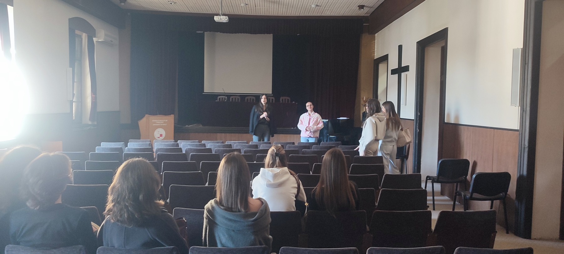 Njihovi prodekan za znanost doc. dr. sc. Domagoj Volarević, prodekanica za nastavu dr. sc. Jadranka Garmaz, ujedno pročelnica odjela za religioznu pedagogiju i katehetiku uz par studenata 3.i 4.godine su nas detaljno upoznali sa radom fakulteta, njegovim ustrojstvom i katedrama, radom i aktivnostima unutar i van same institucije, programu cjeloživotnog učenja, ERASMUS+ projektima, radom studentskog zbora i katoličkog portala ‘’Mreža riječi’’ kojeg su pokrenuli vjeroučitelji Splitsko-dalmatinske županije, a studenti vješto snimaju podcaste pa su učenice imale priliku također saznati na koji način fukcionira visokoškolsko obrazovanje pri Sveučilištu u Splitu na primjeru ovog fakulteta.